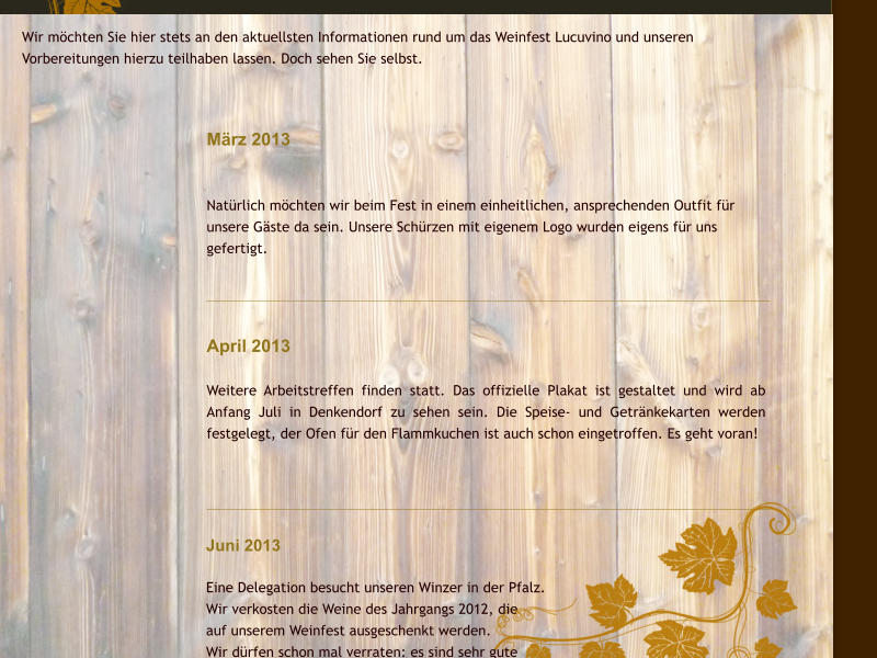 Wir möchten Sie hier stets an den aktuellsten Informationen rund um das Weinfest Lucuvino und unseren Vorbereitungen hierzu teilhaben lassen. Doch sehen Sie selbst.